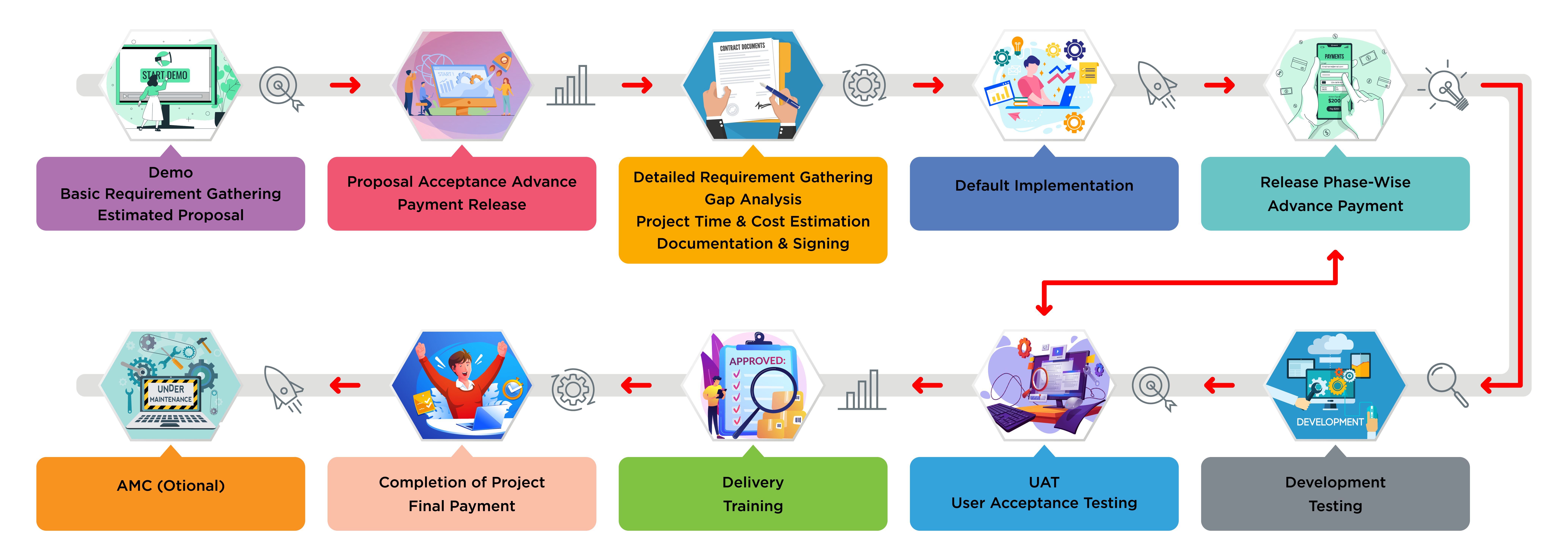 Maintenance & Support is completely provided depending upon the size of project. AMC is optional. One can even just avail our AMC for minimum Fee ( yearly ).